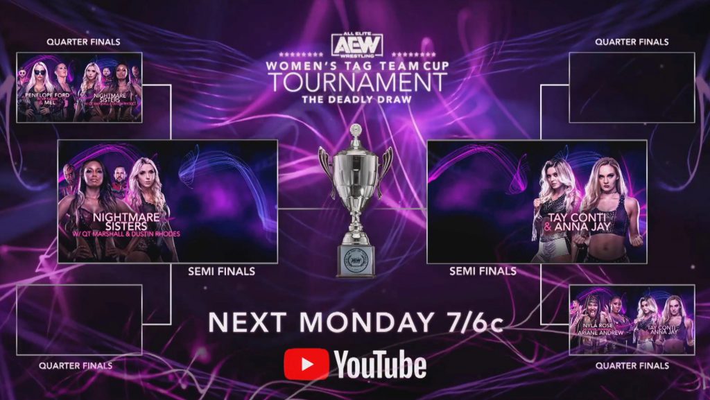 The Deadly Draw – the Women’s Tag Team Cup Tournament kicked off last week. The rules for the tournament states that the teams will be determined by a “random draw.” This event is currently airing on AEW’s YouTube channel.