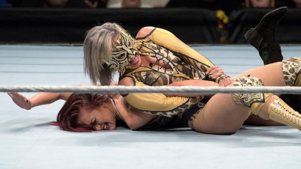 The Scottish star decides to climb the top rope of a corner but misses her Swanton Bomb finisher. Sugehi takes advantage, locks in an armbar and forces KLR to tap out. Adelante Princessa!