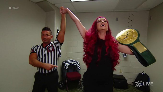 She celebrated afterward by gloating to the male superstars backstage as the first-ever pregnant champion. This is the first title that Maria has held during her career with WWE. How long will she hold this title? Will she make it past the end of tonight’s RAW?