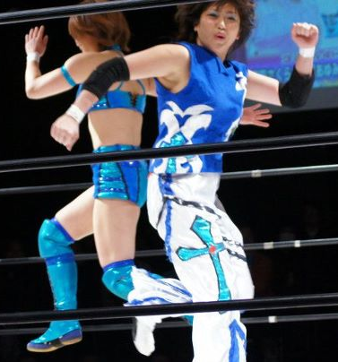 She and team-mate Tomoka Nakagawa ended up defeating Ayumi Kurihara and Sakura Hirota (or “Sakura Hamada”, as Sakura amusingly cosplayed as the former TNA Knockouts Tag Team Champion) in 15:56.