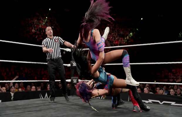 The fight then continued in the ring as Billie and Peyton targeted Asuka. They would take turns trying to take her out with a double team of vicious blows but Asuka would fight back every time.