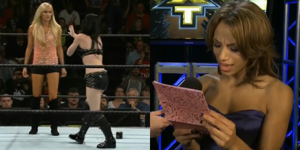 Onto Sasha, she is very very fun to watch in the ring, and I love that she’s (seemingly) going to be getting these backstage segments until she finds out her secret admirer because it will aid her in the acting part of being a Diva. Not many really start off strong when they first get to developmental (AJ’s first FCW promo to now is like a different person) as they have to adjust to actually being behind the equipment and lights etc. Plus, acting is not easy — especially for people who are getting thrown in front of a camera fairly quickly without prior life experience. It takes time, and the fact that Sasha is getting a platform to improve is great. As far as her crush goes… I’ve assembled a list of suspects I want/think it might be: