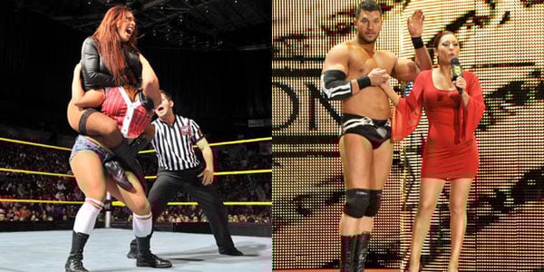 As Derrick Bateman competes in the main event against Darren Young, he is suddenly interrupted by the voice of an angel, as Maxine screams out his name from the stage. She and Dirty Curty walk out hand in hand, as she questions if this is a distraction for him during his match? Following that, Maxine informs the world that in two weeks for NXT’s 100th episode, Maxine and Dirty Curty are having a LAS VEGAS WEDDING! The world celebrates at this magnificent news, which ultimately provides distraction for Derrick as Dirty Curty chimes in that they’re in “looooooveee”. Derrick tries to exit the ring, but Darren Young capitalizes with the finishing move that Jinder Mahal used in FCW (sorry, but that will forever be how I remember it!) to pick up the victory. Bateman then stares at the two, who proceed to make out on the stage to close the show.