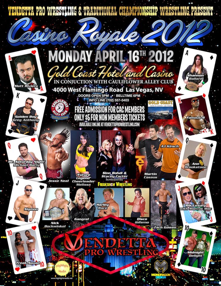 ChickFight and Diva Dirt are teaming up to present the featured female match at Casino Royale, the pro wrestling event taking place during Cauliflower Alley Club‘s 2012 reunion which takes place in Las Vegas from April 16-18th — and we’re opening up an opportunity to female wrestlers around the world to be part of it.