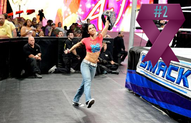 Whatever you may think about her tactics, AJ is definitely getting the better of Kaitlyn. She's got Kaitlyn more worried about when she'll pop up next than about her own matches. Kaitlyn practically chasing AJ out of the arena on SmackDown proved that she's gotten under her skin. At Money in the Bank, will AJ manage to defeat Kaitlyn again by whittling her down mentally?