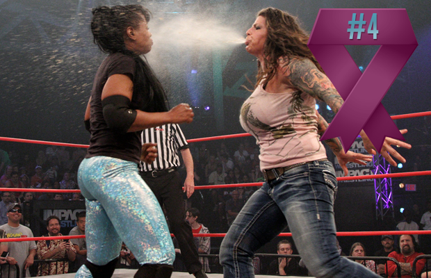 Though it was taped months ago, ODB’s victory over Jacqueline in a Hardcore match at TNA’s One Night Only: Hardcore Justice 2, was a big coup for the Knockout. Sure, the match was more comedy than brutality, but any victory over Jacqueline when so many weapons are handy is highly impressive.