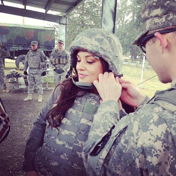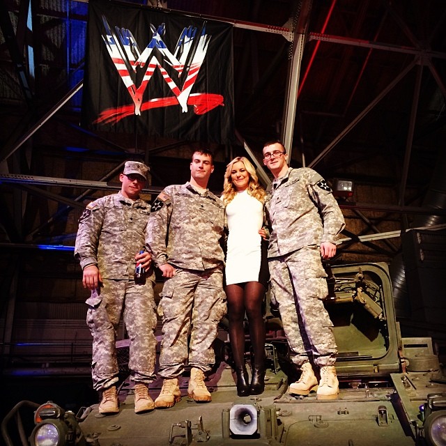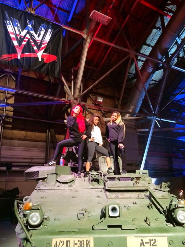 A number of Divas tweeted pictures and posted photos to their Instagram accounts, showing them atop massive tanks, at a shooting range and meeting members of the military at the base.