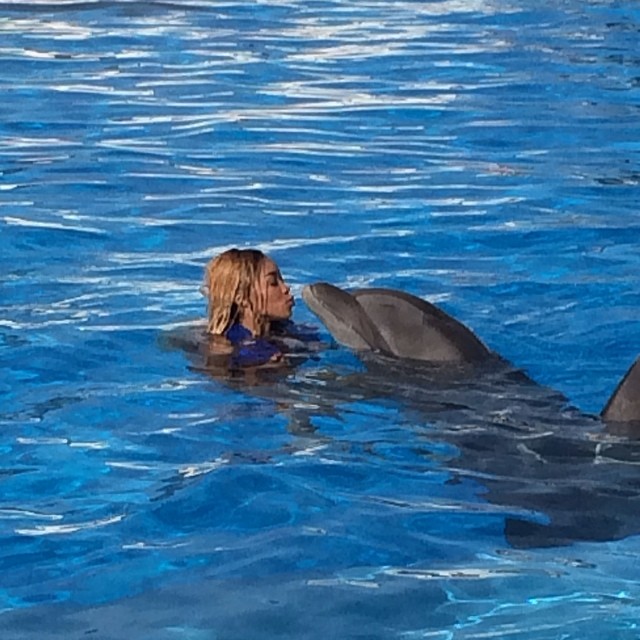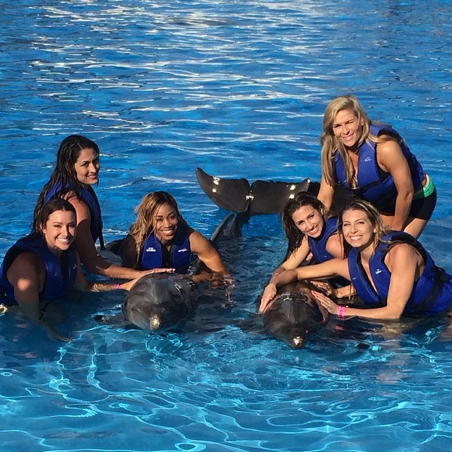 Brie was joined by her sister Nikki, Cameron, Eva Marie and Natalya as the group partied, sunbathed and swam with dolphins.