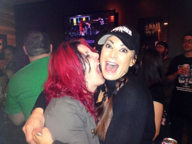 Today, we got a small glimpse of just how scary she is, even in photo form, as she and Tara engaged in a comical snapshot while Knight was in town for SHIMMER weekend.