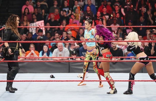 Out of nowhere, Nia Jax blindsides Mickie James and takes her out. She makes a beeline for the ring, where Alexa shoves Sasha into her. While Nia tosses Sasha out the ring and finishes off Bayley with a Samoan Drop, leaving the Champion knocked out as she raises the RAW Women’s Championship over the 3 popular faces Mickie, Sasha and Bayley. As she walks up the ramp, she catches the attention of Alexa, whose smug grin turns to a look of fear. Nia backs up the ramp, while Alexa looks on at her new division. The new lines have now been drawn!