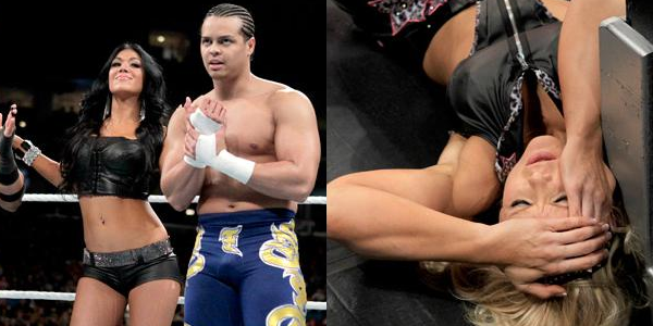 Speaking of fun, we have more Divas, which is a nice surprise to me. Brie and Nikki are backstage arguing with Johnny Ace in between them.