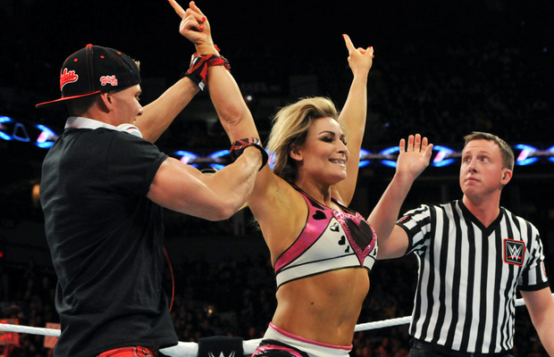 Brie locks in the same submission again and this time, Nattie knows what to do to escape. Once free, she clobbers Brie with a set of hard punches. Brie goes for a sunset flip, which Nattie reverses into a Sharpshooter attempt. Brie reverses that into a small package yet then Natalya reverses that into a pin of her own and she gets the win!
