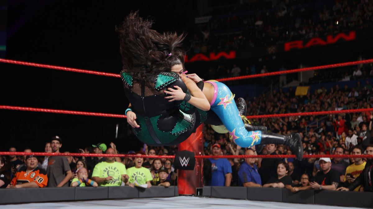 Sporting a knee brace, Sasha’s has a cocky smile on her face which distracts Nia. Bayley spots the window of opportunity to use an Avalanche Bayley-to-belly to get the 1.. 2.. 3! Bayley is now the #1 Contender for the RAW Women’s Championship!
