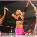 Boy, did my heart stop when I found out Layla would actually be in a match! Holy frig! I ain’t gonna lie, it’s one of the few things that have excited me about Raw’s women’s division in the past few months. Says a lot about the division, if you ask me. When Kelly, Candice and Mickie came out, I actually began thinking about how strong the faces are on Raw at the moment. You have three popular Divas who can go in the ring each and every week, that’s a great thing. Meanwhile on the heel side, we only have one strong Diva in Beth Phoenix while we cannot take the likes of Jillian and Katie Lea seriously because we know they are but jobbers. If WWE actually built up Jillian or Katie a little bit more, I think the division could be very strong. You have three believable faces but only one believable heel. Hell, I think the less experienced Layla (who I heart and adore) is a more effective and believable heel than Jillian and Katie. I can believe that Layla is a bad ass Diva who’ll eff you up, but Jillian and Katie at this point are jokes. I hope WWE builds up Layla a little stronger than they have done with those two, because we need some strong heels on Raw. The only Diva that didn’t get perpetually buried like Jillian and Katie was Melina when she was a heel. She was always the number two heel behind Beth and when you had a tag team match say Mickie & Candice vs Beth & Melina, it seemed like an even match-up. We all knew the three faces would win this match, if WWE bothered in the slighest, the fans may just have felt this was an even match-up. Like I say, Layla is a greet heel in the making and I hope she’s not buried like her partners from last night.