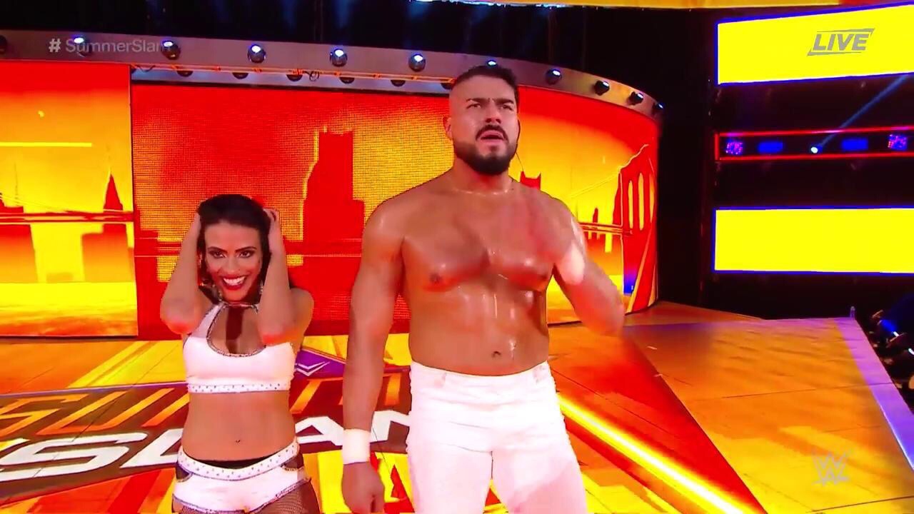 SummerSlam starts off with the women involved in a match up as the first match on the Kickoff show is the Mixed Tag Team match. This match saw Lana and her husband Rusev face off against Zelina Vega and her client Andrade “Cien” Almas. This match came about from recent weeks of matches between Rusev against Almas and more recently Lana against Vega. Rusev and Lana have been coming up on the losing end of their respective matches. These losses have been due to the fact that Aiden English has been accidentally distracting his friends and causing them to succumb to their opponents. English is told to not come out to the ring tonight by Rusev.