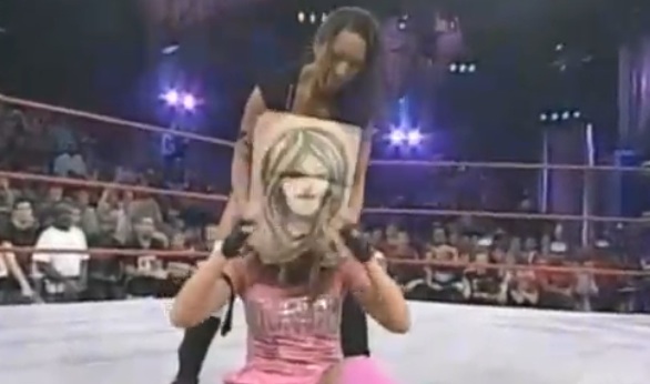 At the time, Velvet and tag team partner Angelina Love had been running amok in the Knockouts division, “paper bagging” other Knockouts as the Beautiful People. In this match, Gail would get a measure of revenge.