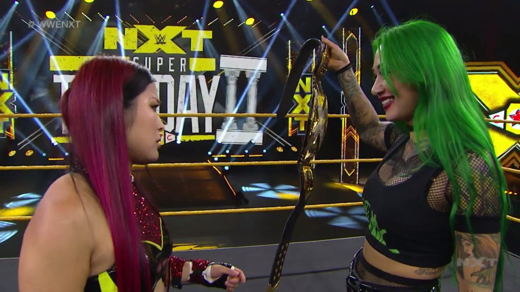 Stone would reappear and attempt to help Aliyah, however, the two would be taken out by both Blackheart and Shirai. The teamwork was short-lived however because afterward, Blackheart would pick up Shirai’s championship. As Shirai went to take it, Blackheart would pull it away. This left the Joshi Judas seething as she warns Blackheart not to mess with her.