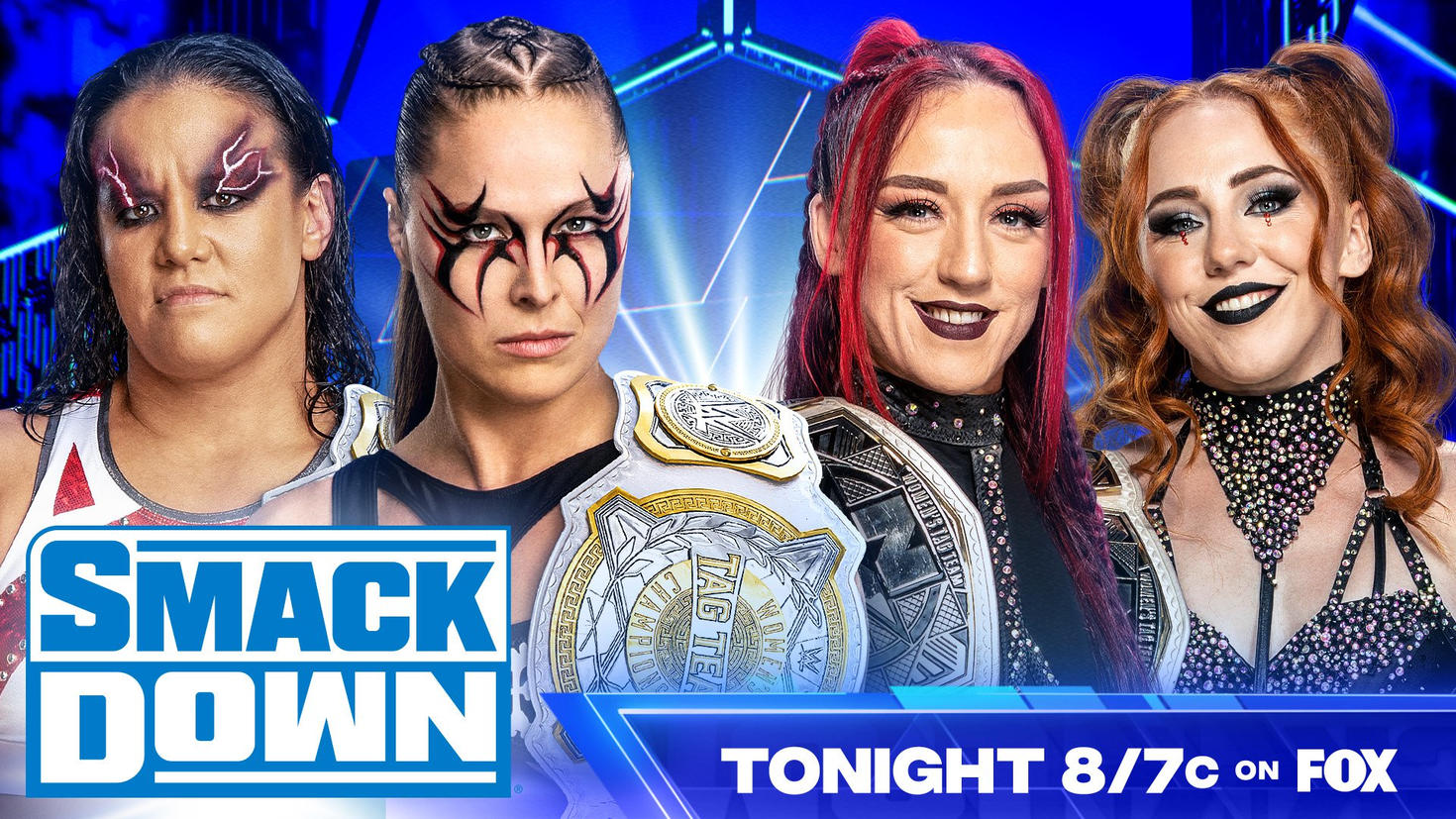 Tonight’s SmackDown will see the unification of the WWE Women’s Tag Team Titles and the NXT Women’s Tag Team Titles. Shayna Baszler and Ronda Rousey will take on Isla Dawn and Alba Fyre.