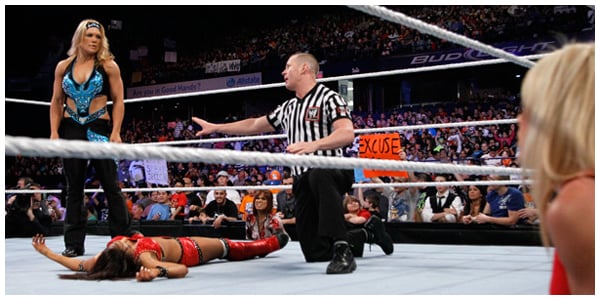 I think I’ve lost count with the amount of times a match has ended with Beth hitting the Glam Slam on Layla for the pin. I’m sure I’ve seen it at least three times in the past month or so. This was effectively a squash match for Beth, though I really think they should have tried something different here. Perhaps give Layla a [much desired] win by having McCool and Vickie interefere more and cost Beth the match. Yes, we’re building up Beth for a title match but you’ve already had the same finish many a time. Why not mix it up and tease tension between McCool and Beth by having the champion cost her the win? I guess they did have that interaction between Beth and Michelle after the match which also worked to a degree.