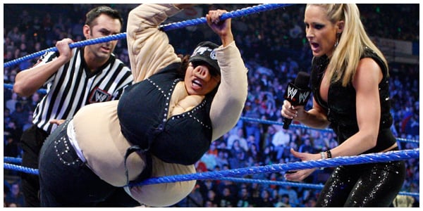 For the past few months, the storyline on SmackDown has centered around Mickie James‘ weight with the Diva being taunted and called ‘Piggie James’. WWE even went as far as to create a graphic like the old Looney Tunes cartoons saying, “That’s all, folks” — a line reused by Michelle McCool on this week’s SmackDown. What became evident on this week’s SmackDown is that the joke is wearing thin and to WWE, I say: “The joke’s over, folks.”