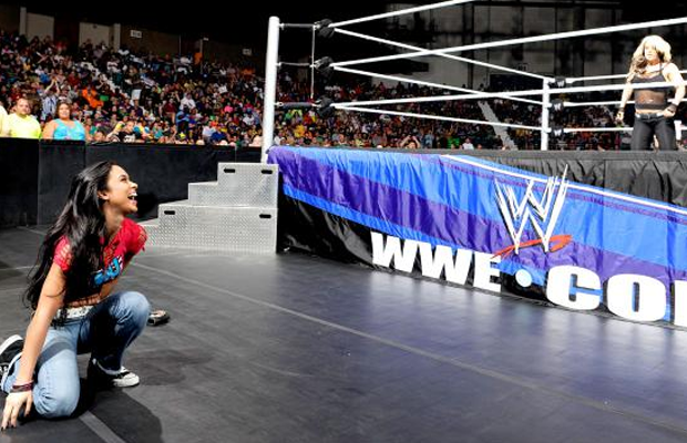 As Alicia celebrates her long awaited win, Kaitlyn and Layla chase AJ backstage. Backstage, we are treated to an amusing segment involving AJ, Brie Bella, Nikki Bella and Big E. Langston: