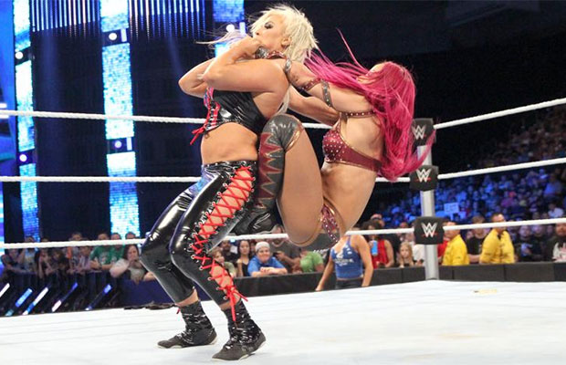 The match is fairly quick (probably no longer than 2 minutes) and ends after Flair causes a distraction for Lynch and allows the “carrot top” to be rolled up for a 3 count. After the victory, Charlotte gets into the ring to attack Becky, leaving her defenseless and rolling out onto the floor. As the champ begins to gloat about her dominance, the Boss struts down to the ring for a stare off. Charlotte cockily yells “you wanna go?” as the two strip off into their wrestling gear but as soon as Sasha pounces the champ dashes out of the ring to safety. In defense of Flair, Dana tries to attack Sasha but is then sent to the floor with a punch and falls victim to the Bank Statement whilst a smug Banks smiles at the retreating champ.