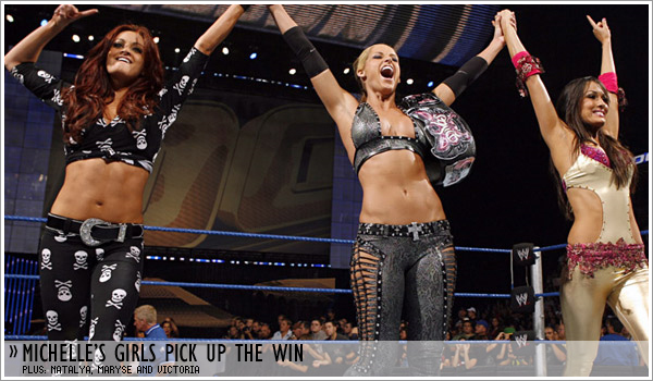 This week on SmackDown: Michelle McCool and team mates, Brie Bella and Maria picked up a pin fall victory over Maryse, Natalya and Victoria in six Diva action.