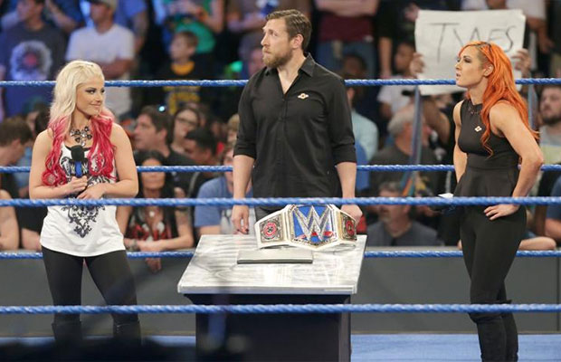 SmackDown Live kicks right off with a contract signing. General manager Daniel Bryan insists that the signing will not end in a brawl (cue boos from the crowd), and then goes on to introduce SmackDown Women’s champion Becky Lynch and the Small but Fierce Alexa Bliss. The two start off by insulting each other based on their “differences”. Bliss says that Lynch has the skin of a rhino where Lynch fights back by saying that whilst Bliss is “preparing for a pageant, [Lynch is] preparing for a fight.” Bliss then quickly anchors in the point that Becky does not “fit the role of a champion.” She enforces that Becky’s role in life is to be “the woman that succeeds, then fails miserably.”