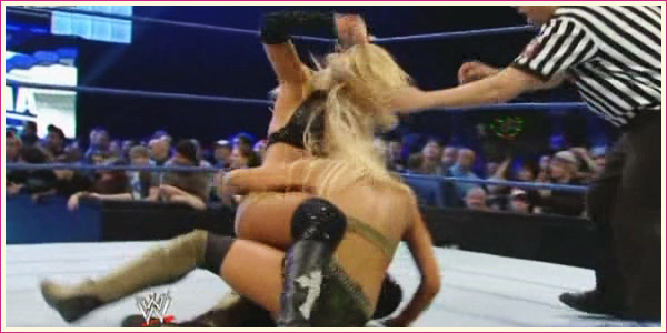This week’s SmackDown sees Divas tag team action, as Raw’s Women’s Champion, Melina stops by for a visit to team up with Maria and take on Divas Champ, Maryse and Michelle McCool.