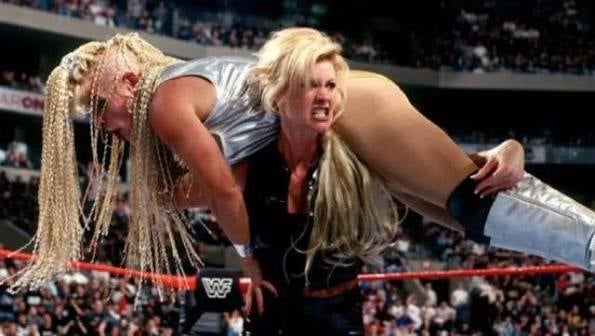Luna and Sable were often known as rivals both in and out of the ring. Sable had a more mainstream appeal which won her the WWE Women’s Championship. Luna challenged for the title against Sable at the 1999 Royal Rumble event. It was a strap match in which Sable retained.