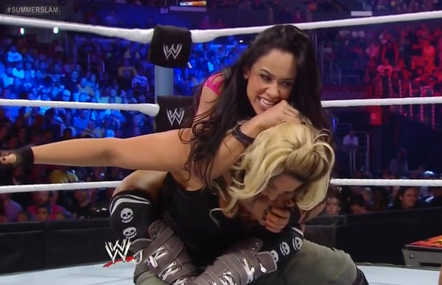 Tonight at SummerSlam, Divas Champion AJ Lee will put her title on the line against Paige, while Brie Bella goes head-to-head with Stephanie McMahon. Leading up to these matches, we’re taking a look back at memorable Diva moments from SummerSlam history.