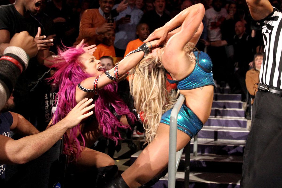 “I’m gonna spill some tea here because [AJ Lee] said she was sick. Her stomach was hurting, but then she told me to do my move where I drop the leg on her stomach. So, I was like, ‘Girl, I’m confused.'”