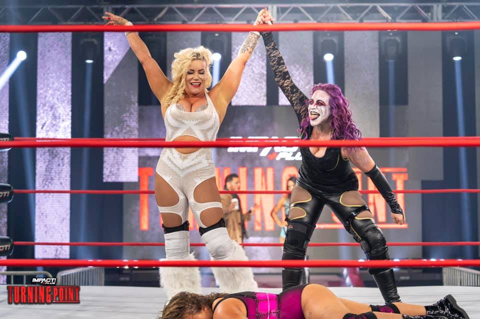 On this week’s IMPACT the Knockouts Tag Team Championships were fought for in a rematch between the champs Fire ‘N Flava against Jordynne Grace and Rachael Ellering. After a very short reign as champs for Grace and Ellering, Fire ‘N Flava regained the titles becoming the only team as a whole to win the titles … Read more