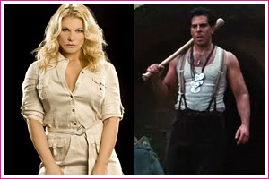 Appearance: A gray racerback top and black pants–both shredded in some way– are nice, but don’t look that great together. Her hair is something odd, too, but I can’t explain it. The chain seems random too, and kind of looks like she stole it off of a bicycle. None of it seems to go together well, even though they’re all shooting for a “tough” look.