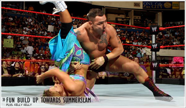 This week on Raw: The build-up towards SummerSlam saw a fun match between Mickie James and Santino. Beth Phoenix once again destroyed Kelly Kelly too.