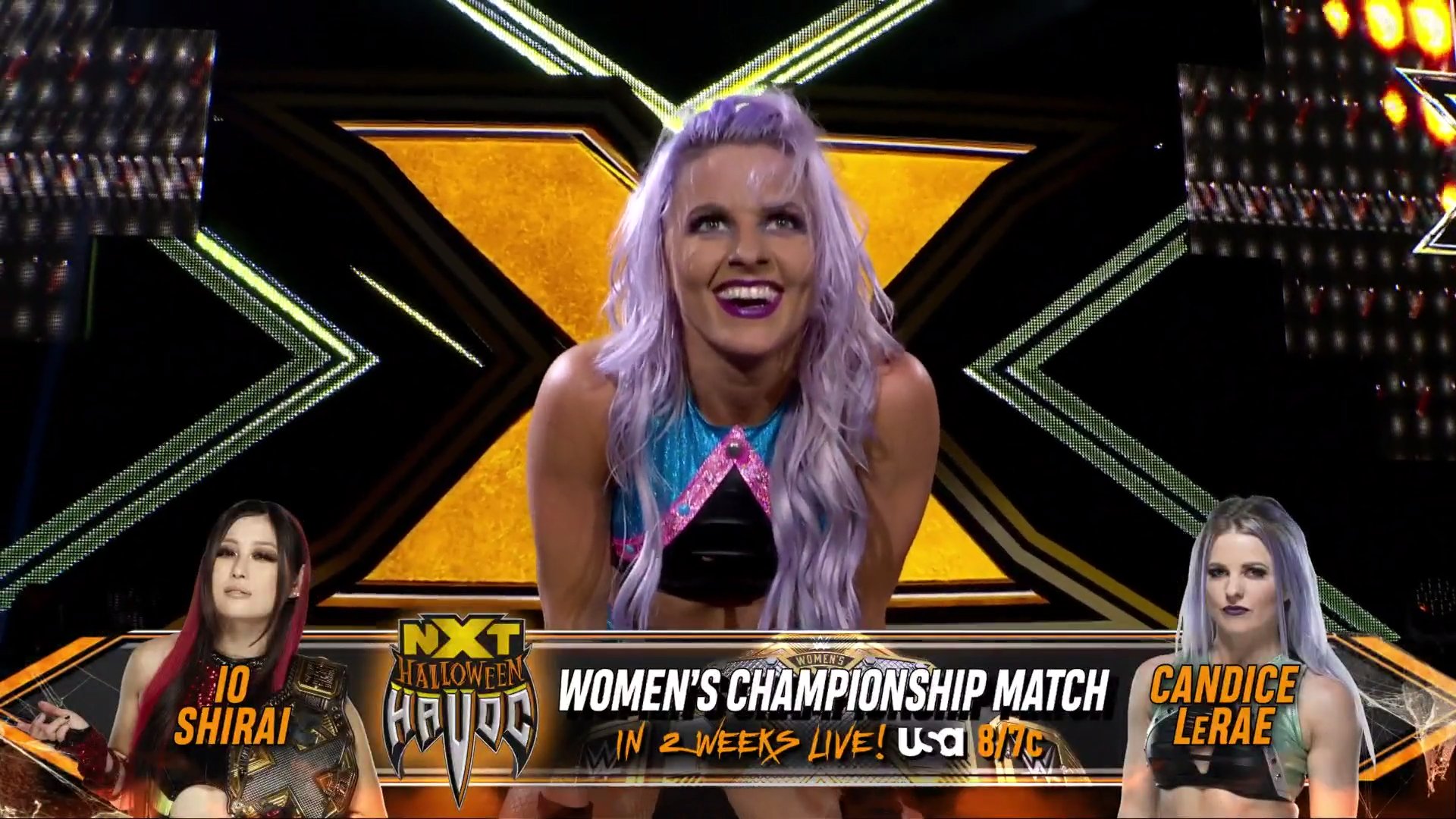 Much like the men last week, the team members of each team were perched up top and isolated from ringside. Indi Hartwell pledged her allegiance to Team Candice and delivered a ladder where they could make their way down to help Gonzalez. Rhea Ripley and Ember Moon followed to help Blackheart. Hartwell continued to try and help as she set up a ladder in the middle of the ring but that just opened up the door for NXT Women’s Champion Io Shirai.