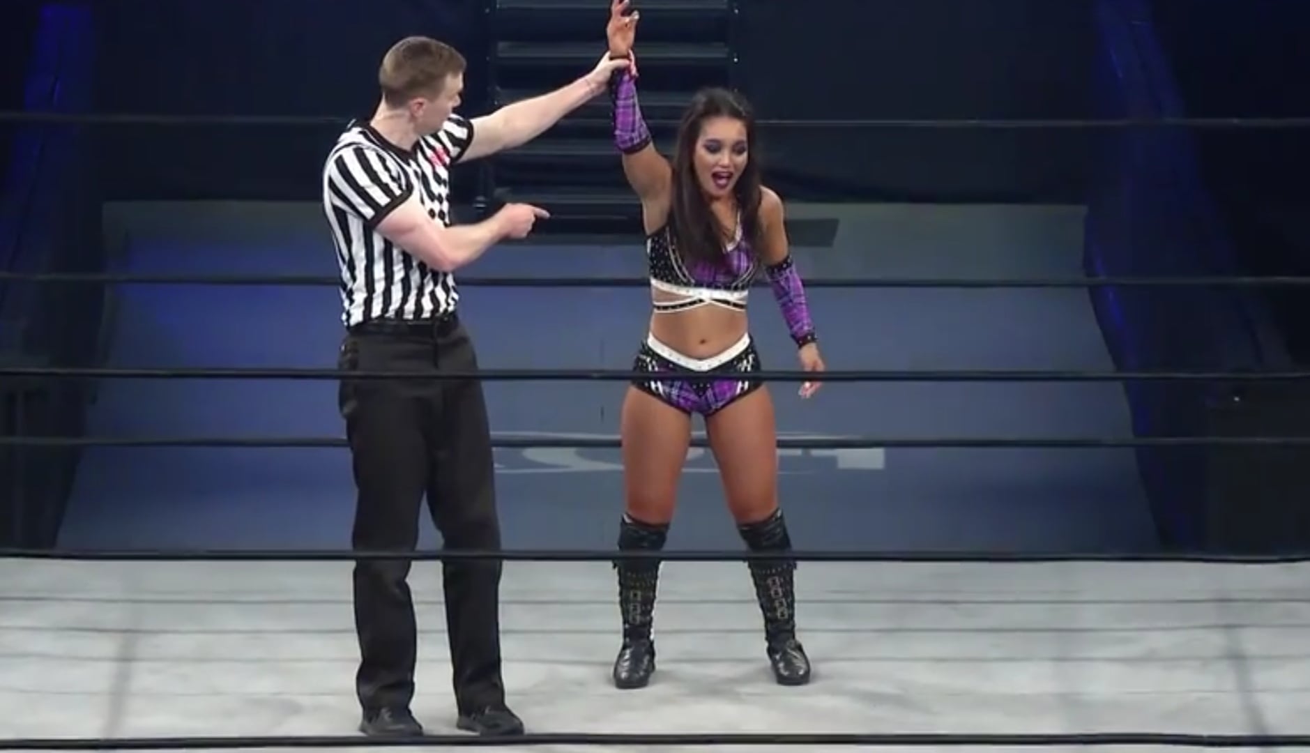 The last time we saw these two in the ring together it was the first episode of the series and it was in tag team action. Rok-C partnered with Max the Impaler while Luck had Hyan by her side. The match was impressive and lasted to the 15-minute time limit making it a draw. This time, Rok-C was able to best Luck by hitting Code Red to get the three count for the victory.