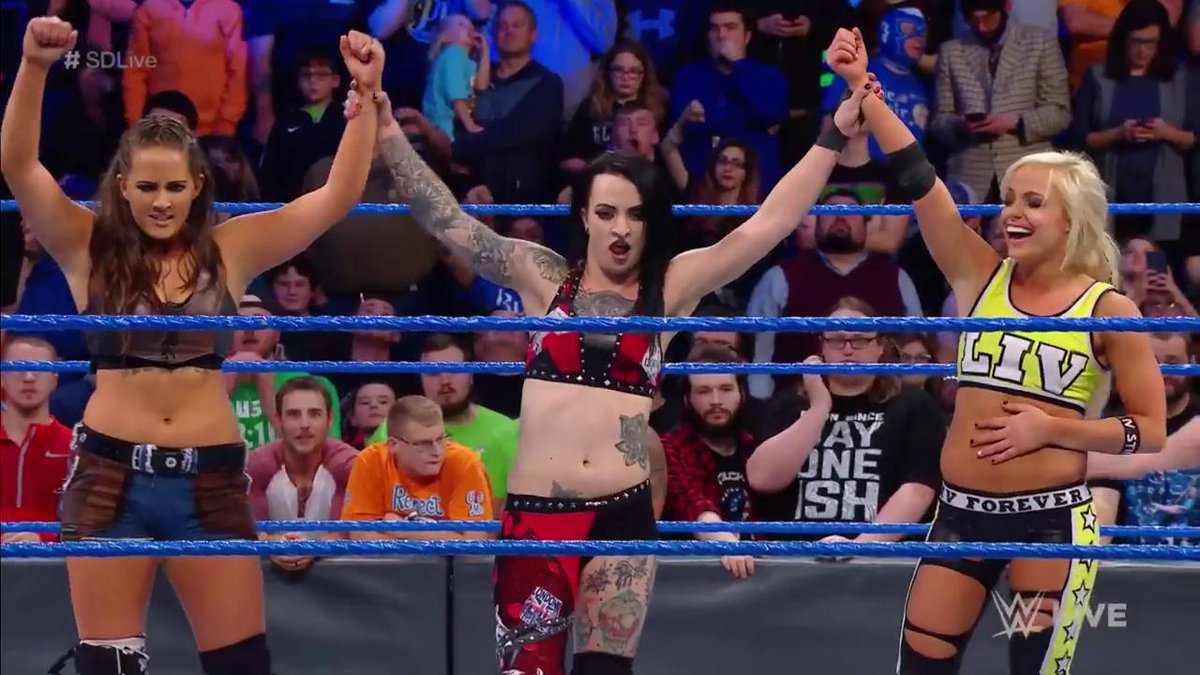 Tonight on SmackDown Live (Nov 28th), Ruby Riott (who has added an extra “t” to her name), Liv Morgan and Sarah Logan picked up a big win in their main roster debut match in a Six-Woman Tag Match against Charlotte Flair, Naomi and Natalya. #SDLive #WomensChampion @MsCharlotteWWE, @NaomiWWE, AND @NatbyNature are ready to work together … Read more