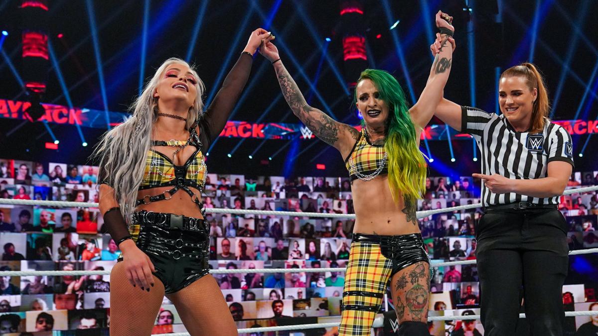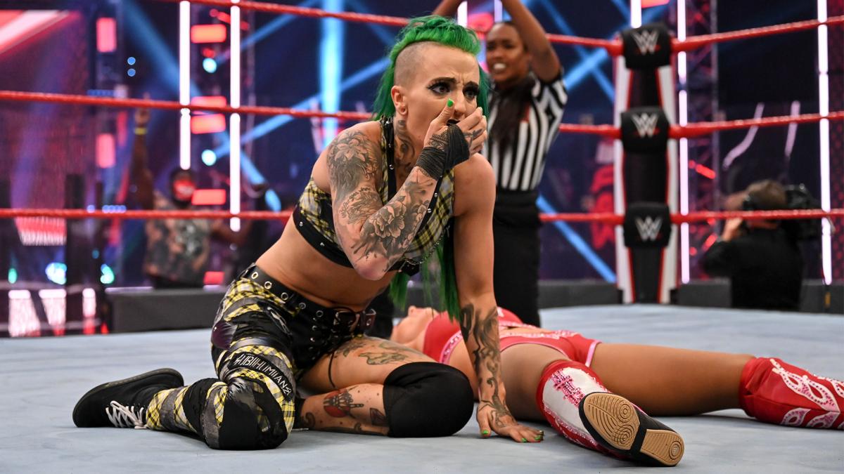 The Riott Squad was close to another victory as the lights started to flicker and go out signaling the emergence of RETRIBUTION. Morgan went for the pin on Jax and at the count of two the lights went out and the RETRIBUTION stable had their first promo. So that being said, the match ended without a result.