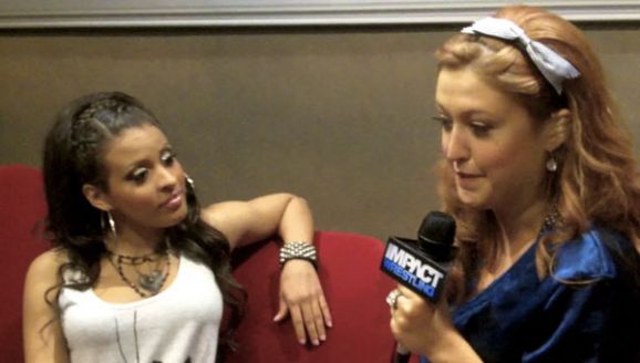Oh hello there! Simply can’t resist my charm, can you? Haha. Welcome back to the weekly Diva Dirt Impact Write-Up. Last week, we determined new TNA Knockouts Tag Team Champions in Angelina Love and Winter. We also saw a brutal attack on Velvet Sky by Sarita which left us all pretty certain that both of them had used a strap before. It was a touching brawl. Honestly, I was choked up. This week, the beatdowns between Sarita and Velvet Sky continue and Madison Rayne gives us a glimpse into her glamorous side. Hold onto your rhinestones, people! This is going to blow your bedazzled socks off!