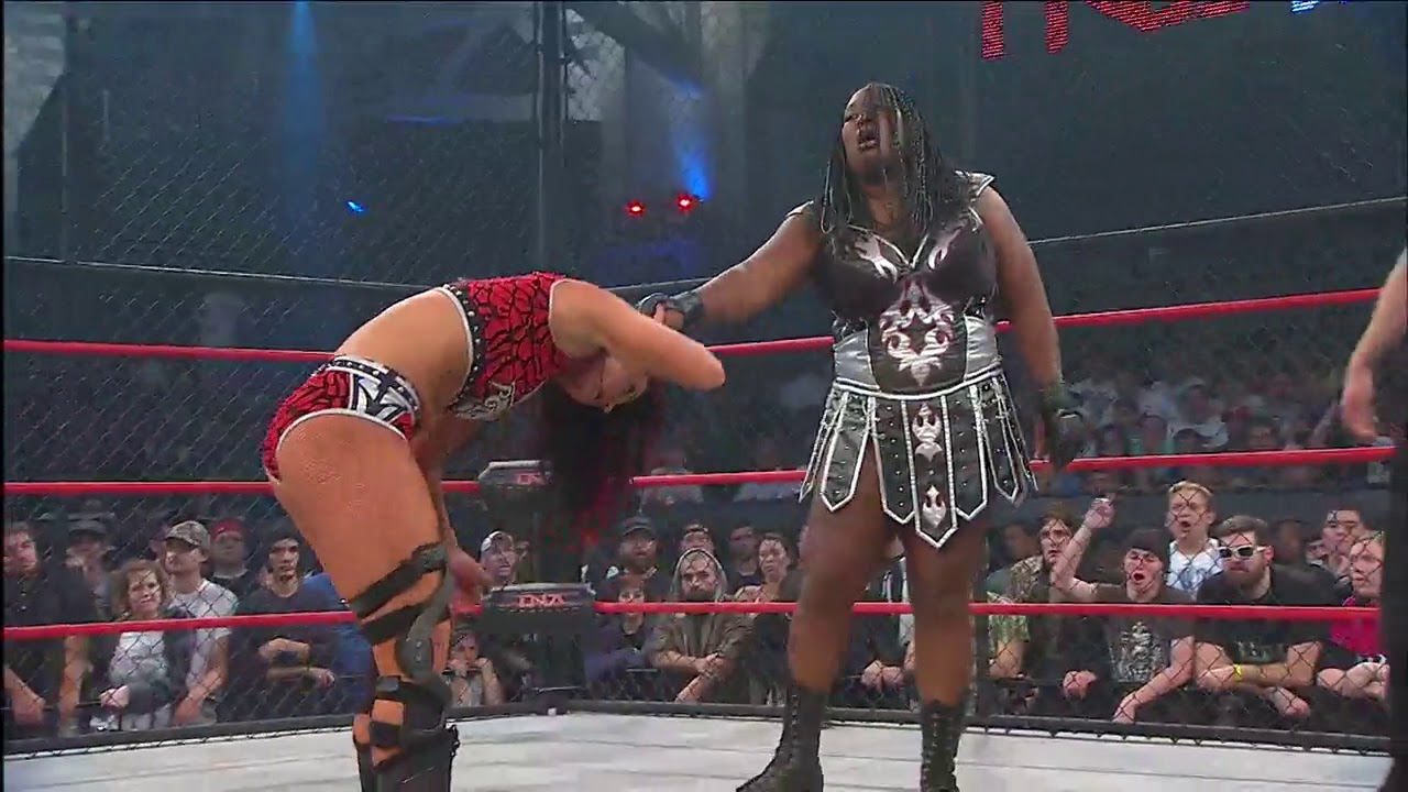 Enjoy this gem from TNA’s Turning Point which took place almost 10-years ago. In the unforgiven Six Sides of Steel match, Awesome Kong and Tara battled it out. This match came just months after Tara’s debut in TNA in 2009.