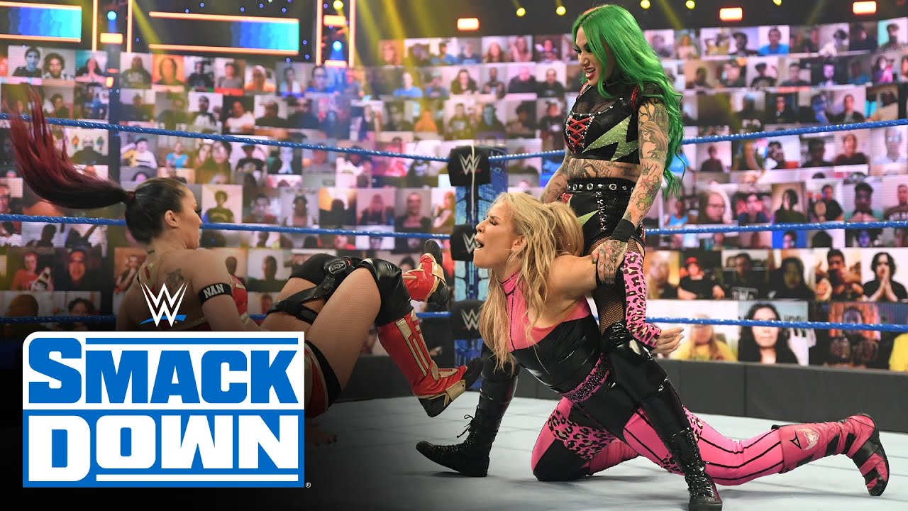 Morgan’s music hits and she answers Bayley and the tag champs’ claims. She says it appears that they have a problem with the SmackDown women’s locker room. Morgan states that on behalf of the women’s locker room she would handle this. Showing no signs of worry, Morgan counted the three against one odds and said it sounded fair to her as she raced to the ring.