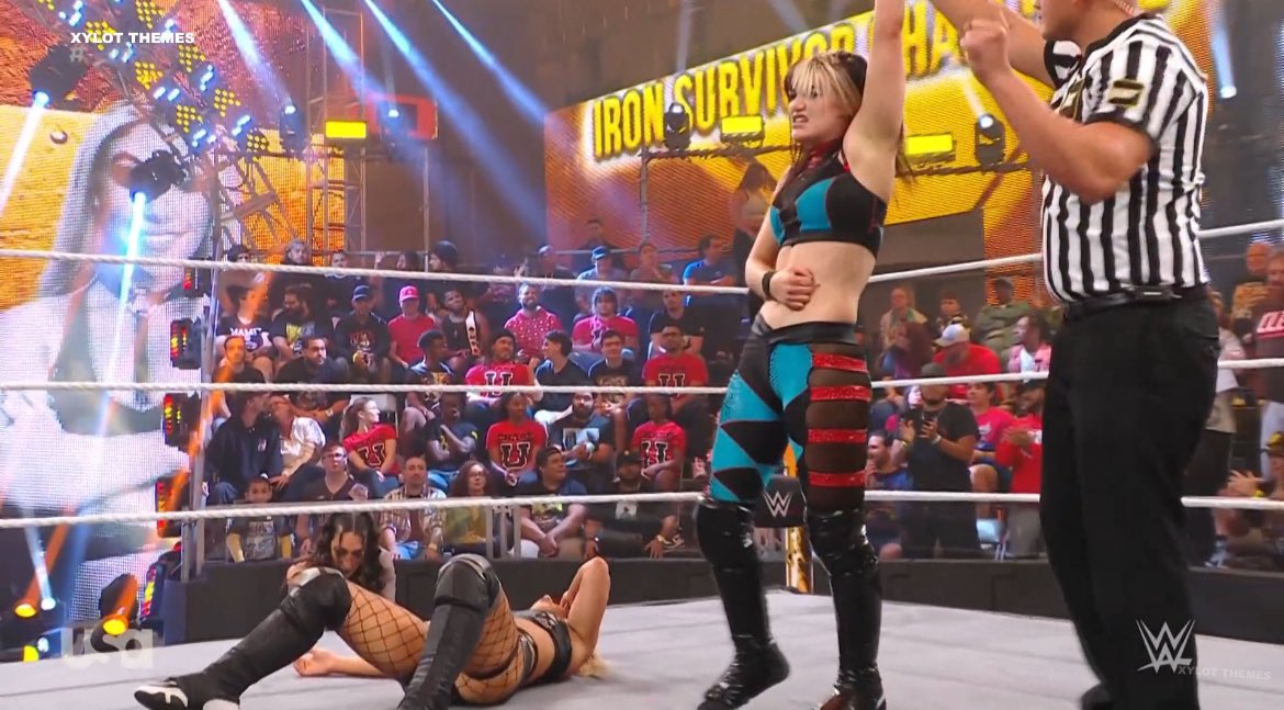 The match would get down to a final five of Nile, Stark, Nia Jax, Raquel Rodriguez, and Shayna Baszler. It would take Rodriguez, Baszler, and Stark to eliminate Jax. Nile was on the ring apron which angered Jax who pulled her off, eliminating Nile in the process. Rodriguez would be eliminated next as this left Stark and Baszler to slug it out on the ring apron. Finally Stark would get the win after Baszler had both feet touch the floor.