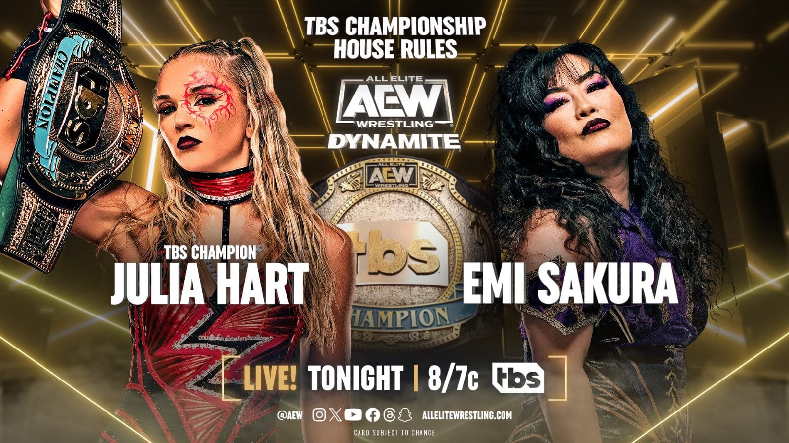 The AEW TBS Champion Julia Hart is set to take on veteran Emi Sakura on tonight’s Dynamite.
