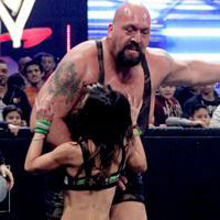 Poor AJ only tried to profess her love to current boyfriend, Daniel Bryan, but ended up on the receiving end of a monster, as the Big Show accidentally ran her over on SmackDown.