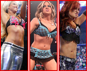 I wouldn’t have put Kelly Kelly here because on the surface, it’s nothing out of the norm. But if we look a little closer that bra is hideous with a capital H. Too much going on — stripes and criss-crosses? Progressively worse.