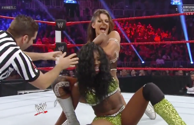 Tomorrow night at TLC, Nikki Bella defends the Divas Title against AJ Lee. Leading up the event, we’re looking back at memorable Diva moments from the history of the Pay-Per-View.