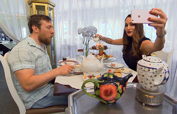 Following the awkward fight, Nikki takes Bryan to have high tea with her as the two want to bond some more. So, as the foodies and tea drinkers they are, high tea is the perfect choice, surely. Bryan is a little bewildered before going in as he isn’t sure if it’s up his alley, but as the pair have their food and tea, he ends up having quite a bit of fun. The topics of conversation revolve around Bryan’s wishes to be a parent and spending more time with Brie post Mania. At the end of the meal, Nikki basks in how happy Bryan seems and shares the same excitement because of it.