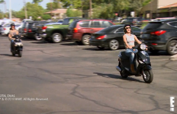 Brie, who Nikki says had promised she wouldn’t buy a scooter, breaks that promise pretty quickly. When she shows up to lunch on that very vehicle, she gets a very hostile welcome from her sister.