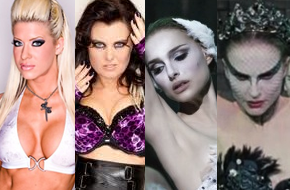 Why?: One is a (relatively) meek woman; the other is the dark force that controls her. Am I describing the two sides of Natalie Portman’s character in Black Swan or the relationship between Angelina Love and Winter? Could be either, which is why having them dress up as two very different sides of the same crazy coin makes perfect sense. Besides, seeing Winter in that dramatic makeup would be amazing, no? We can picture her showing up throughout the night, gradually sprouting more and more black feathers until she’s as covered as Portman’s Black Swan was at the end of Swan Lake.